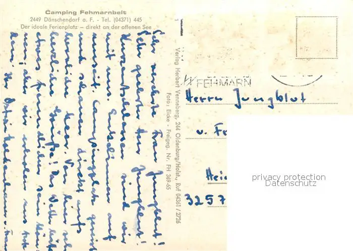Daenschendorf_Fehmarn Camping Fehmarnsbelt Fliegeraufnahme Daenschendorf Fehmarn postalisch gelaufen nach 1965 Erhaltung siehe scans [WerneD78] WernPID7