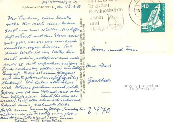 Dagebuell Kategorie Alte Ansichtskarten Postkarten bx93188 Dagebuell Faehranleger Fliegeraufnahme Dagebuell postalisch gelaufen 1978 Erhaltung siehe scans [WerneD78]