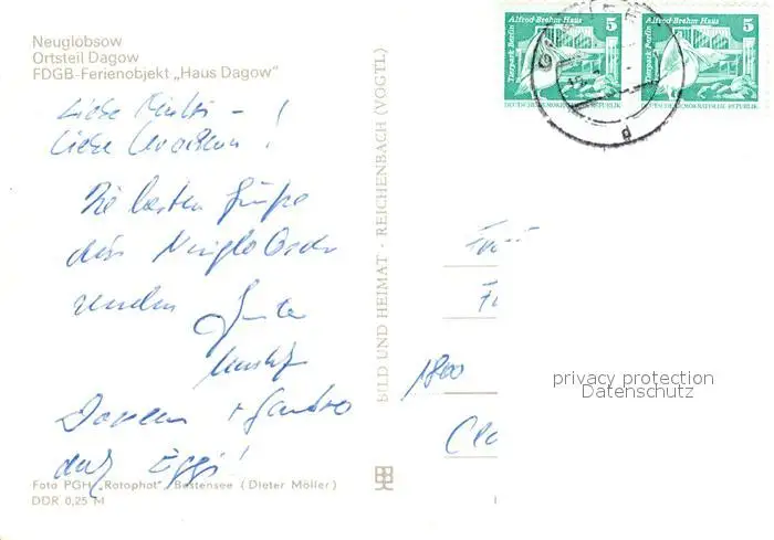 Dagow Neuglobsow Kategorie Alte Ansichtskarten Postkarten bx74638 Dagow_Neuglobsow Ferienobjekt Haus Dagow Dagow Neuglobsow postalisch gelaufen nach 1965 Erhaltung siehe scans [PaolaD17]