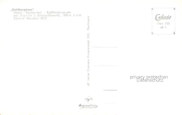 Dahle_Altena Kohlberghaus Hotel Restaurant Kaffeeterrassen Dahle_Altena postalisch nicht gelaufen 1921-1965 Erhaltung siehe scans [WerneD78] WernPID7