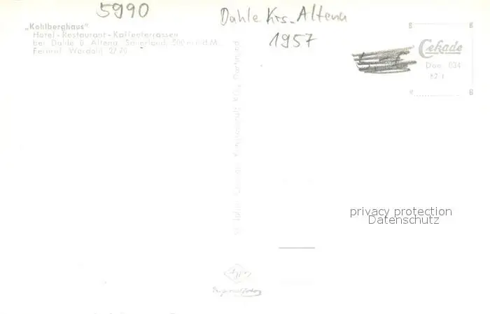 Dahle_Altena Kohlberghaus Hotel Restaurant Terrasse Dahle_Altena postalisch nicht gelaufen 1957 Erhaltung siehe scans [WerneD78] WernPID7