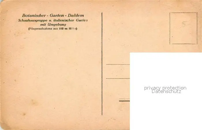 Dahlem_Berlin Fliegeraufnahme Botanischer Garten Schauhaeuser Dahlem_Berlin postalisch nicht gelaufen 1921-1965 Erhaltung siehe scans [KathaD81] Kathoren