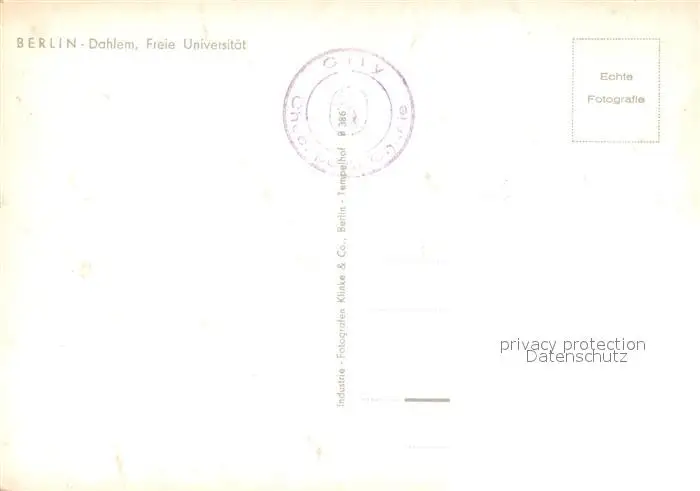 Dahlem_Berlin Freie Universitaet Dahlem_Berlin postalisch nicht gelaufen nach 1965 Erhaltung siehe scans [FriedD77] Frierer