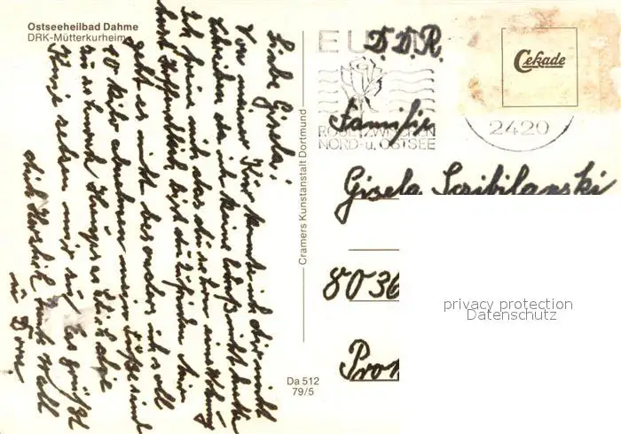 Dahme_Ostseebad_Holstein DRK Muetterkurheim postalisch gelaufen 1979 Erhaltung siehe scans [FriedD77] Frierer