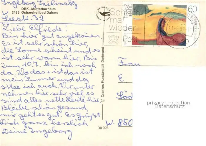Dahme_Ostseebad_Holstein DRK Muetterkurheim Gastraeume Liegewiese Strand Fliegeraufnahme postalisch gelaufen 1992 Erhaltung siehe scans [WerneD78] WernPID7