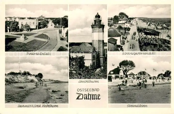 AK / Ansichtskarte Dahme_Ostseebad_Holstein Denkmalplatz Leuchtturm Strandpromenade Dahmeshoeved Nebelhorn Strandleben