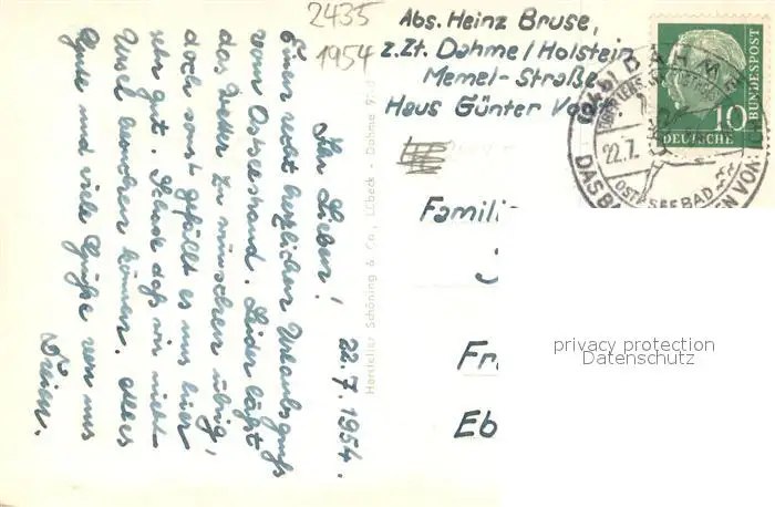 Dahme_Ostseebad_Holstein Denkmalplatz Leuchtturm Strandpromenade Dahmeshoeved Nebelhorn Strandleben postalisch gelaufen 1954 Erhaltung siehe scans [WerneD78] WernPID7