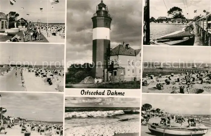 AK / Ansichtskarte Dahme_Ostseebad_Holstein Promenade Strand Leuchtturm Seebruecke