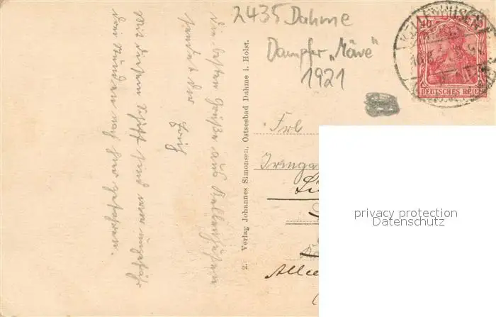 Dahme_Ostseebad_Holstein Salondampfer Moewe postalisch gelaufen 1921 Erhaltung siehe scans [WerneD78] WernPID7