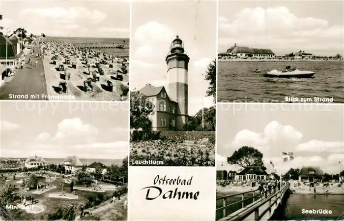 AK / Ansichtskarte Dahme_Ostseebad_Holstein Strand Promenade Minogolf Seebruecke Leuchtturm