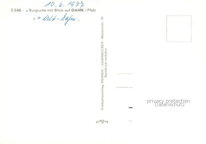 Dahn Burgruine mit Blick auf die Stadt Dahn postalisch nicht gelaufen 1977 Erhaltung siehe scans [FriedD77] Frierer