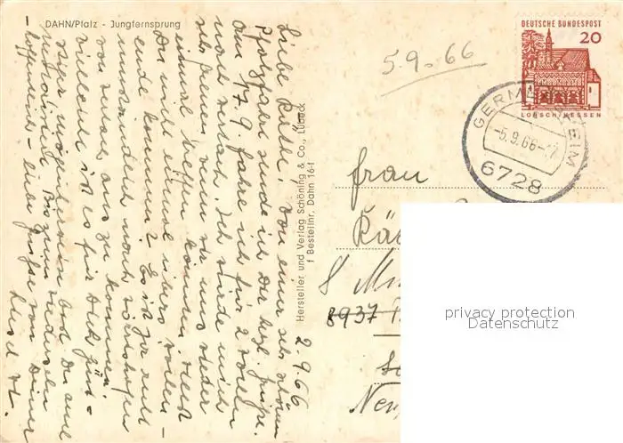 Dahn Jungfernsprung Dahn postalisch gelaufen 1966 Erhaltung siehe scans [WerneD78] WernPID7