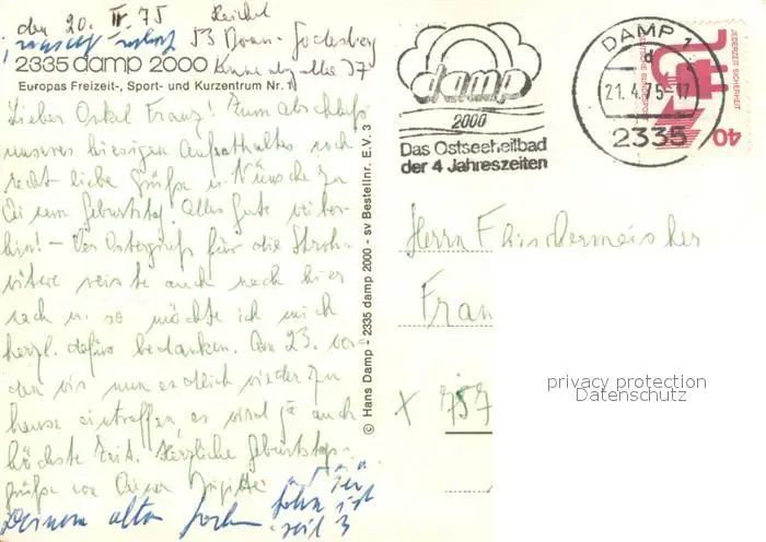 Damp damp 2000 Europas Freizeit- Sport- und Kurzentrum Nr. 1 Fliegeraufnahme Damp postalisch gelaufen 1975 Erhaltung siehe scans [FriedD77] Frierer