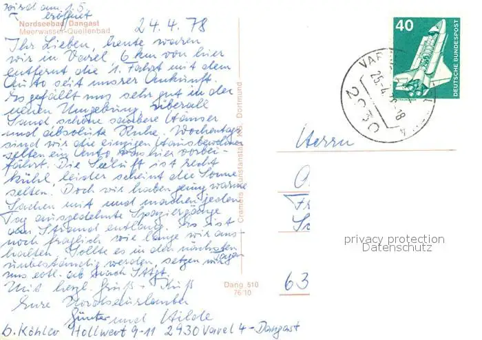 Dangast_Nordseebad Meerwasser Quellenbad Dangast_Nordseebad postalisch gelaufen 1978 Erhaltung siehe scans [FriedD77] Frierer
