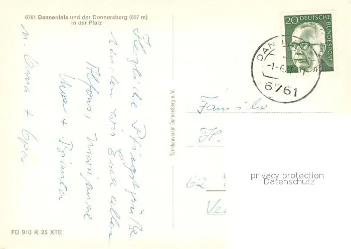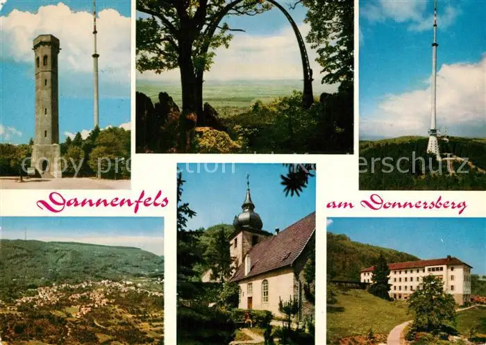 Dannenfels Donnersberg Aussichtsturm Moltkefelsen Adlerbogen Sender Kirche Fliegeraufnahme Dannenfels postalisch gelaufen 1971 Erhaltung siehe scans [FriedD77] Frierer