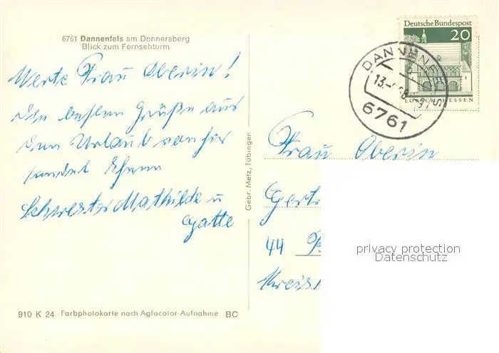 Dannenfels Fliegeraufnahme mit Fernsehturm Dannenfels postalisch gelaufen 1968 Erhaltung siehe scans [WerneD78] WernPID7