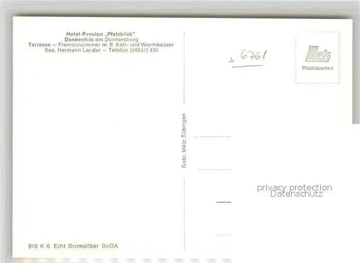 Dannenfels Pension Pfalzblick Dannenfels postalisch nicht gelaufen nach 1965 Erhaltung siehe scans [NatalD47] NataID47