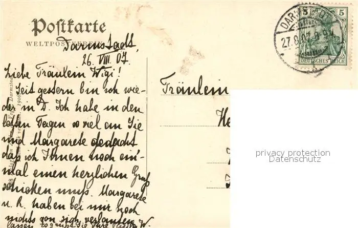 Darmstadt Krafft's Ruhe Gedenkstaette Darmstadt postalisch gelaufen 1907 Erhaltung siehe scans [FriedD77] Frierer