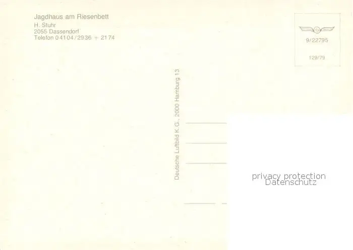 Dassendorf Jagdhaus am Riesenbett Fliegeraufnahme Dassendorf postalisch nicht gelaufen nach 1965 Erhaltung siehe scans [WerneD78] WernPID7