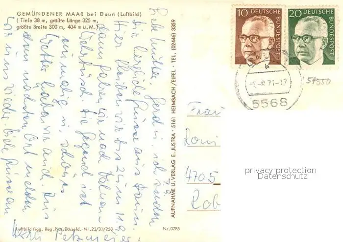 Daun_Eifel Gemuendener Maar Fliegeraufnahme Daun_Eifel postalisch gelaufen 1971 Erhaltung siehe scans [FriedD77] Frierer