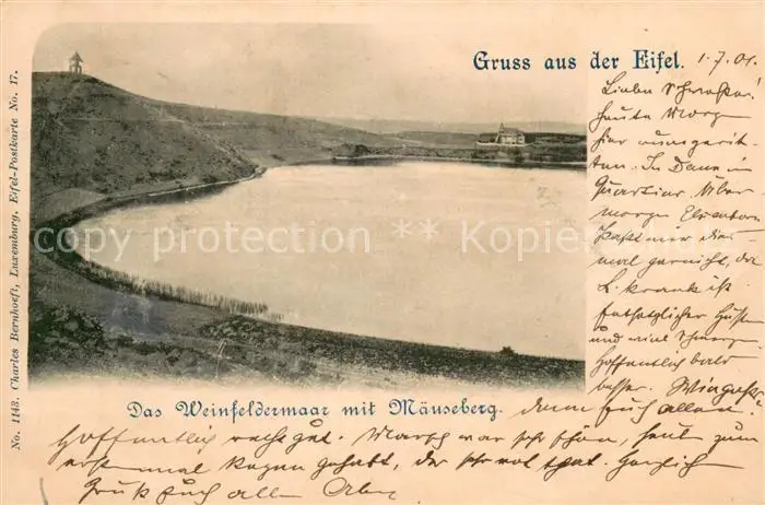 Daun_Eifel Weinfeldermaar mit Maeuseberg Daun_Eifel postalisch gelaufen 1901 Erhaltung siehe scans [LiesaD40] LiesID40
