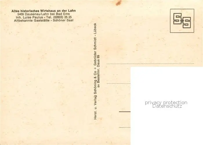 Dausenau Altes historisches Wirtshaus an der Lahn Gaststube Stadttor Dausenau postalisch nicht gelaufen nach 1965 Erhaltung siehe scans [WerneD78] WernPID7