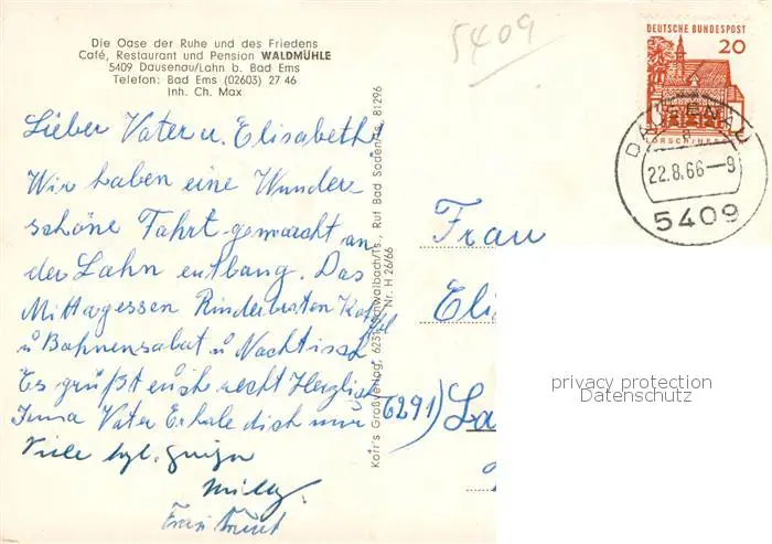 Dausenau 0 Dausenau postalisch gelaufen 1966 Erhaltung siehe scans [LiesaD40] LiesID40