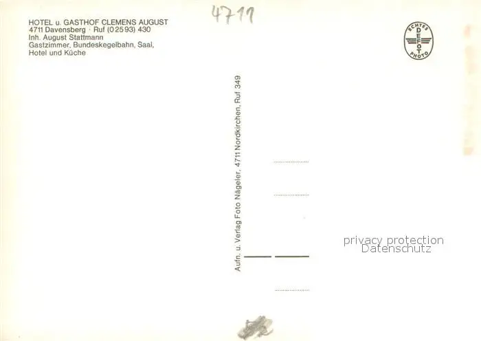 Davensberg Gasthof Clemens August Gastraeume Bar Davensberg postalisch nicht gelaufen 1921-1965 Erhaltung siehe scans [WerneD78] WernPID7