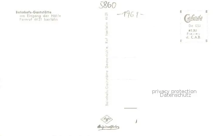Dechenhoehle_Iserlohn Fliegeraufnahme Haus Dechenhoehle postalisch nicht gelaufen 1961 Erhaltung siehe scans [LiesaD40] LiesID40