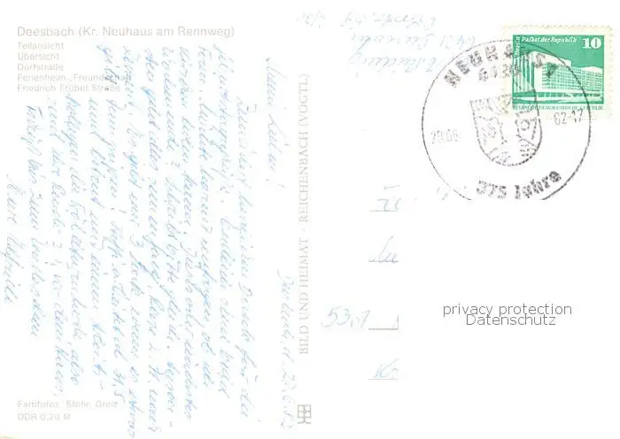 Deesbach Teilansicht uebersicht Dorfstrasse Ferienheim Freundschaft Friedrich Froebel Strasse Deesbach postalisch nicht gelaufen nach 1965 Erhaltung siehe scans [FriedD77] Frierer