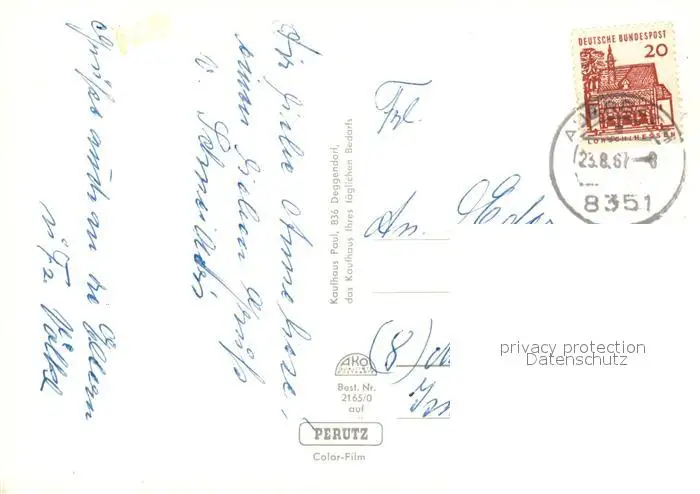 Deggendorf_Donau Stadtpanorama Kloster Niederalteich Kloster Metten Statue Deggendorf Donau postalisch gelaufen 1967 Erhaltung siehe scans [FriedD77] Frierer
