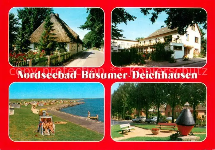 AK / Ansichtskarte Deichhausen_Buesum Nordseebad Strand Park Friesenhaeuser