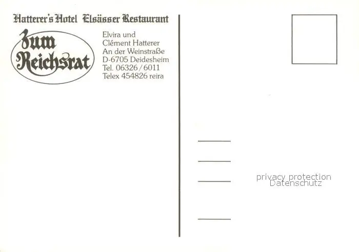 Deidesheim Hatterer's Hotel Zum Reichsrat Elsaesser Restaurant Deidesheim postalisch nicht gelaufen nach 1965 Erhaltung siehe scans [FriedD77] Frierer