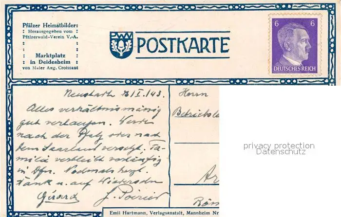 Deidesheim Marktplatz Kirche Deidesheim postalisch nicht gelaufen 1943 Erhaltung siehe scans [WerneD78] WernPID7
