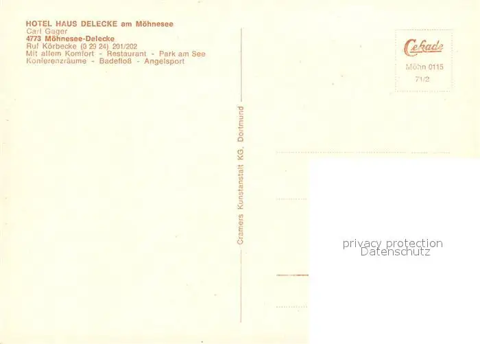 Delecke Hotel Haus Delecke am Moehnesee Delecke postalisch nicht gelaufen nach 1965 Erhaltung siehe scans [WerneD78] WernPID7