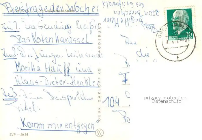 Demmin_Mecklenburg_Vorpommern Rudolf Breitscheid Strasse Luisentor Demmin_Mecklenburg postalisch gelaufen 1970 Erhaltung siehe scans [FriedD77] Frierer