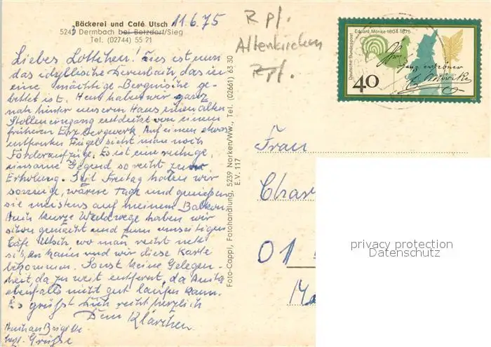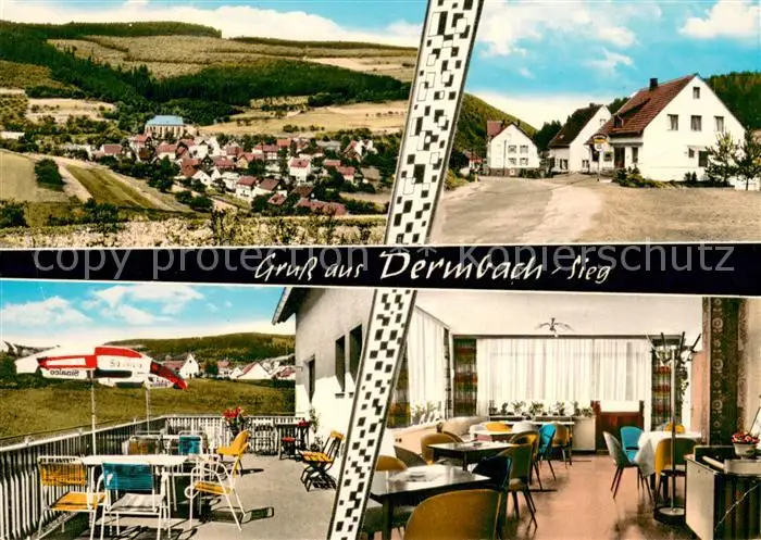 Dermbach Sieg Kategorie Alte Ansichtskarten Postkarten bx93426 Dermbach_Sieg Panorama Baeckerei Cafe Utsch Terrasse Gaststube Dermbach Sieg postalisch gelaufen 1975 Erhaltung siehe scans [WerneD78]