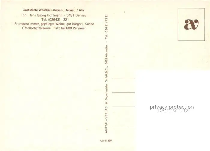 Dernau_Ahr Kategorie Alte Ansichtskarten Postkarten bx73907 Dernau_Ahr Gastst?tte Weinbau Verein Dernau_Ahr postalisch nicht gelaufen nach 1965 Erhaltung siehe scans [PaolaD17]