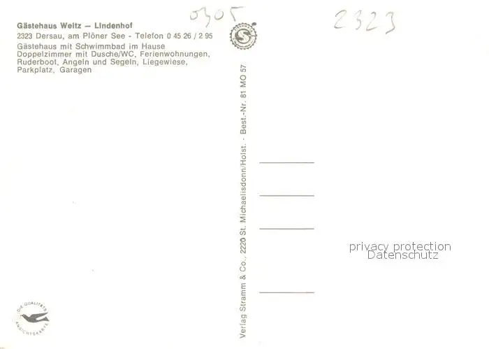 Dersau Gaestehaus Weitz Garten Hallenbad am Ploener See Naturpark Holsteinische Schweiz Dersau postalisch nicht gelaufen nach 1965 Erhaltung siehe scans [FriedD77] Frierer