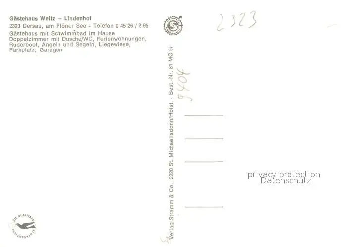 Dersau Gaestehaus Weitz Lindenhof Garten am Ploener See Naturpark Holsteinische Schweiz Dersau postalisch nicht gelaufen nach 1965 Erhaltung siehe scans [FriedD77] Frierer