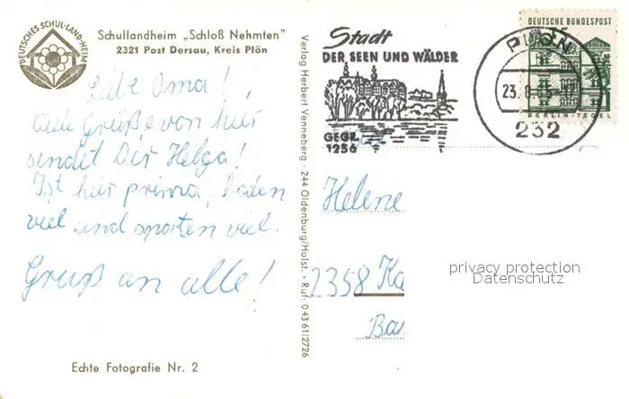 Dersau Schullandheim Schloss Nehmten Dersau postalisch gelaufen 1965 Erhaltung siehe scans [FriedD77] Frierer