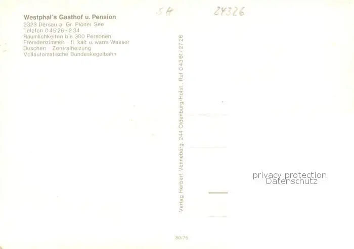 Dersau Westphals Gasthof Gastraeume Ploener See Dersau postalisch nicht gelaufen nach 1965 Erhaltung siehe scans [WerneD78] WernPID7