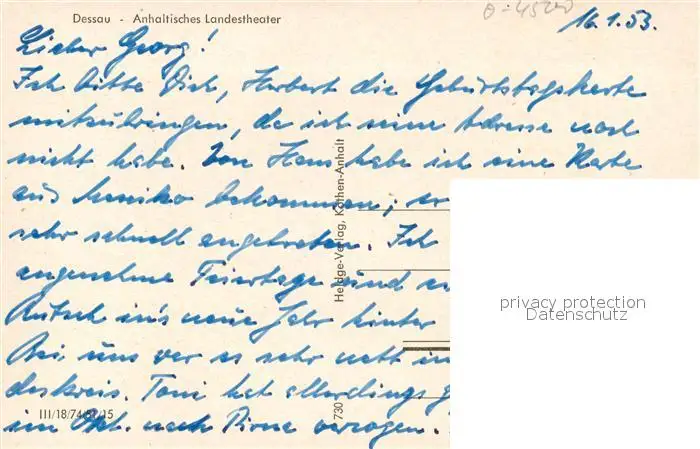 Dessau-Rosslau Anhaltisches Landestheater Dessau-Rosslau postalisch nicht gelaufen 1953 Erhaltung siehe scans [KathaD81] Kathoren