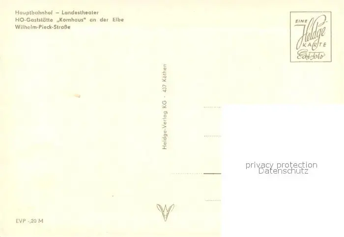 Dessau-Rosslau Hauptbahnhof Landestheater HOG Kornhaus an der Elbe Wilh Pieck Strasse Dessau-Rosslau postalisch nicht gelaufen nach 1965 Erhaltung siehe scans [WerneD78] WernPID7