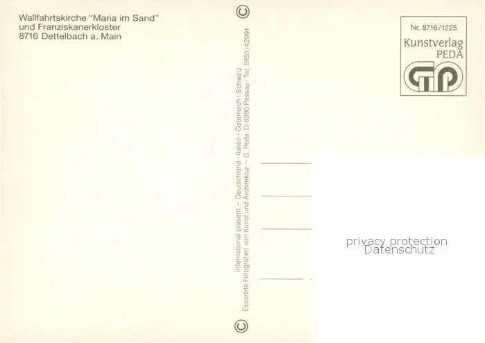 Dettelbach Wallfahrtskirche Maria im Sand und Franziskanerkloster Dettelbach postalisch nicht gelaufen nach 1965 Fliegeraufnahme Erhaltung siehe scans [FriedD77] Fliegeraufnahme Frierer