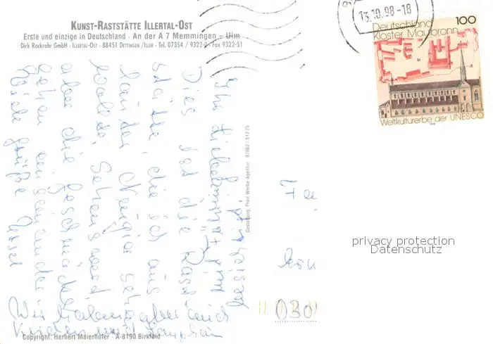Dettingen_Iller Kunst Raststaette Illertal Ost Dettingen_Iller postalisch gelaufen 1998 Erhaltung siehe scans [WerneD78] WernPID7