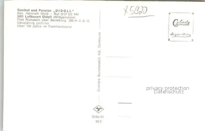 Didoll Gasthof Pension Didoll Landschaftspanorama Didoll postalisch nicht gelaufen 1969 Erhaltung siehe scans [FriedD77] Frierer