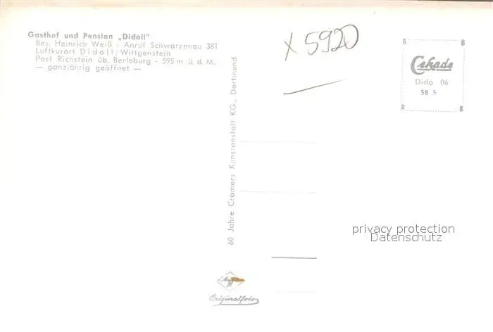 Didoll Gasthof Pension Didoll Wittgensteiner Bergland im Winter Didoll postalisch nicht gelaufen 1958 Erhaltung siehe scans [FriedD77] Frierer