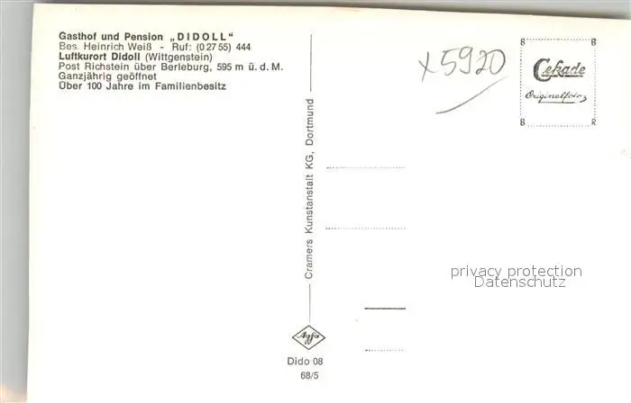 Didoll Gasthof Pension Luftkurort Wittgensteiner Bergland Didoll postalisch nicht gelaufen 1968 Erhaltung siehe scans [FriedD77] Frierer