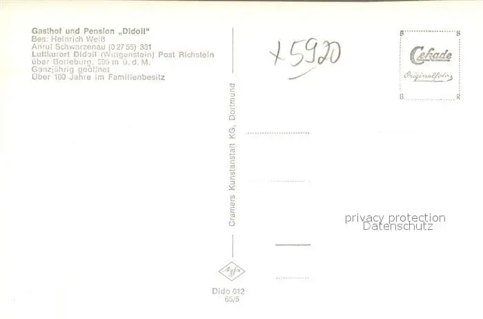 Didoll Gasthof Pension Luftkurort Wittgensteiner Bergland Didoll postalisch nicht gelaufen 1965 Erhaltung siehe scans [FriedD77] Frierer